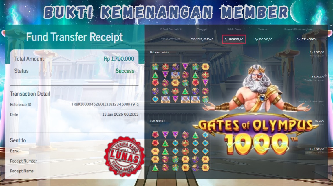"Tanggal 13-01-2026 Selamat kepada member kami MOCH*** memenangkan nominal 1.7 juta!"