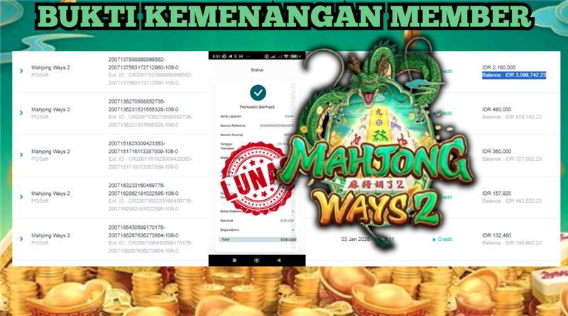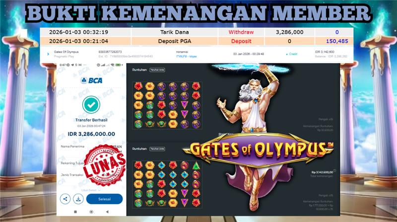 "Tanggal 03-01-2026 Selamat kepada member kami ID NON*** memenangkan nominal 3.2 juta!"