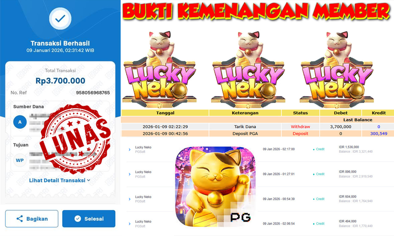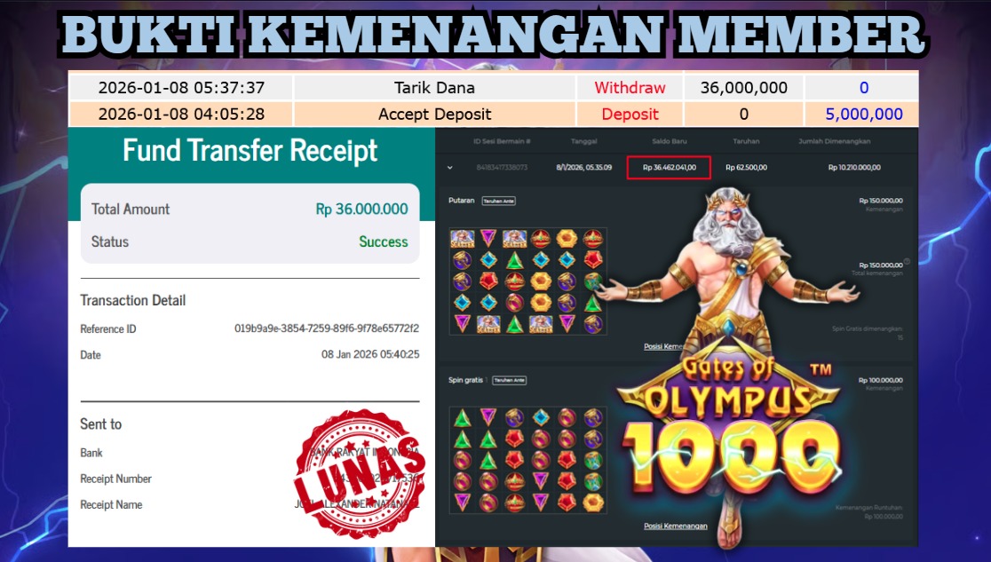 "Tanggal 06-01-2026 Selamat kepada member kami KOY*** memenangkan nominal 3.7 juta!"
