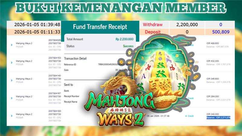 "Tanggal 05-01-2026 Selamat kepada member kami PEM*** memenangkan nominal 2.2 juta!"