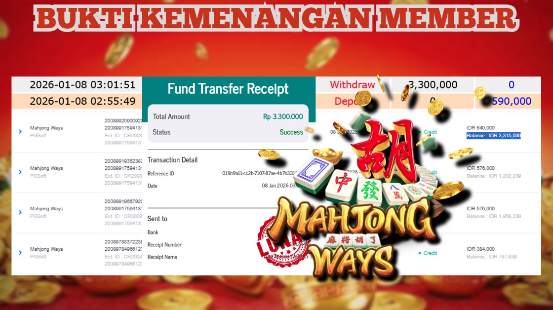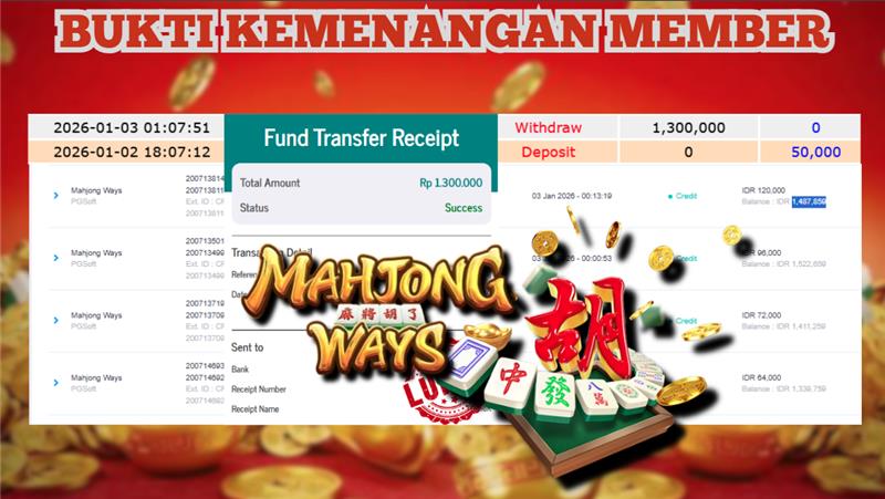 "Tanggal 03-01-2026 Selamat kepada member kami ID OCHI*** memenangkan nominal 1.8 juta!"