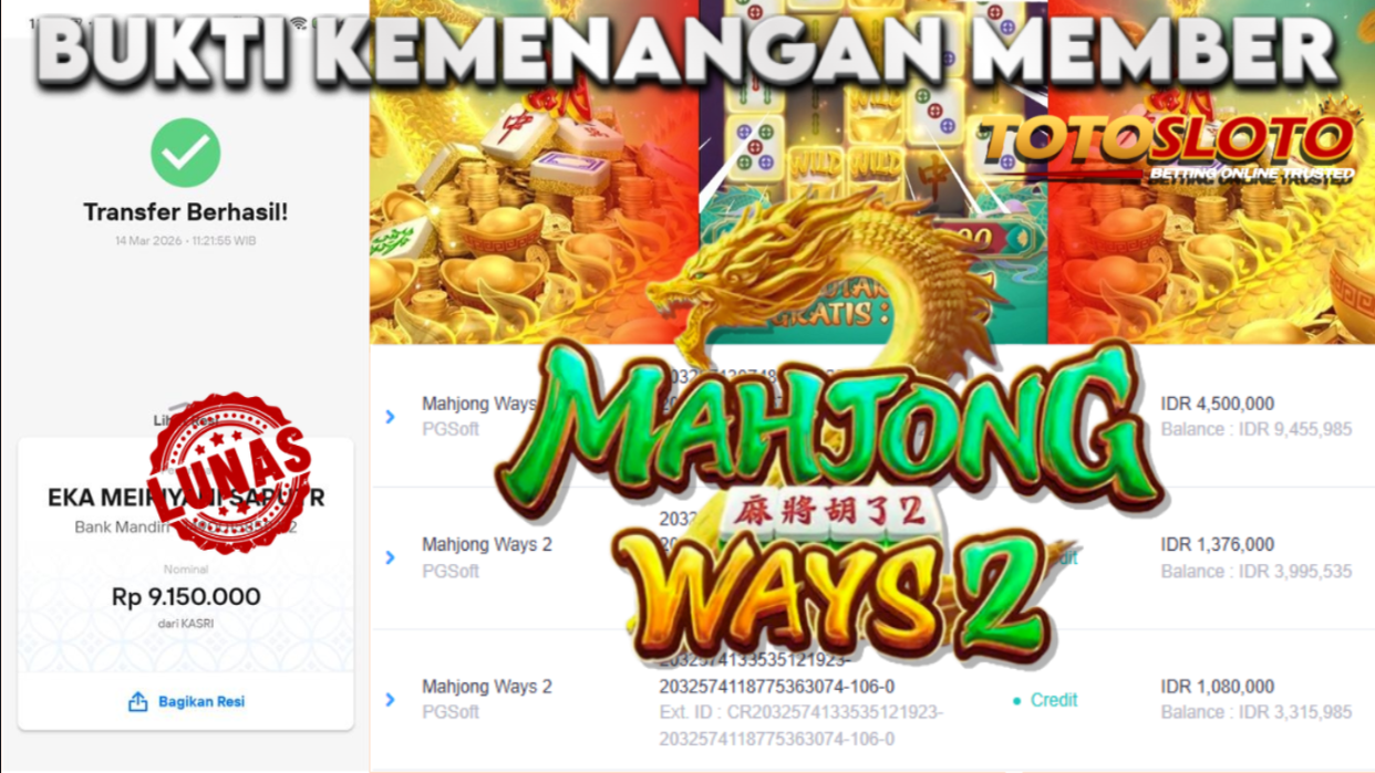 "Tanggal 14-03-2026 Selamat kepada member kami eka*** memenangkan nominal 9.1 juta!"