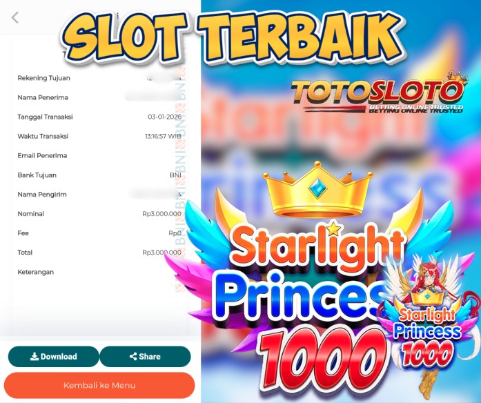 "Tanggal 03-01-2026 Selamat kepada member kami ID SLOTOLO*** memenangkan nominal 8 juta!"