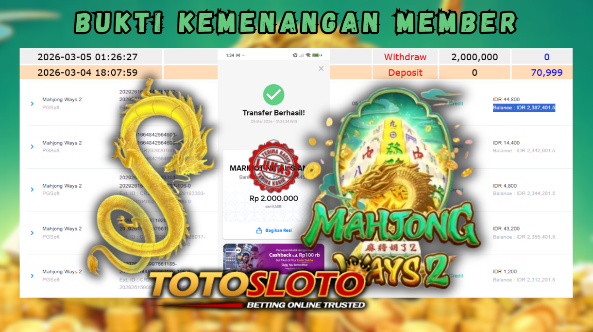 "Tanggal 01-03-2026 Selamat kepada member kami BEJO*** memenangkan nominal 2 juta!"