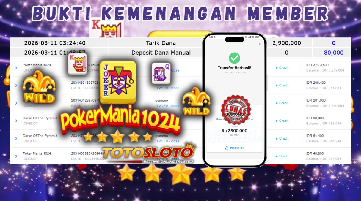"Tanggal 11-03-2026 Selamat kepada member kami GUM*** memenangkan nominal 2.9 juta!"