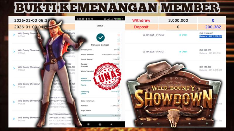 "Tanggal 03-01-2026 Selamat kepada member kami ID cahyo*** memenangkan nominal 3 juta!"