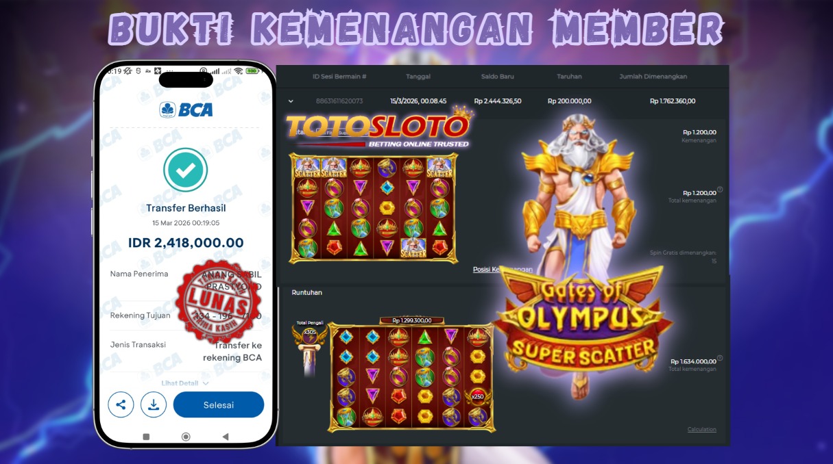 "Tanggal 15-03-2026 Selamat kepada member kami anang*** memenangkan nominal 2.4 juta!"