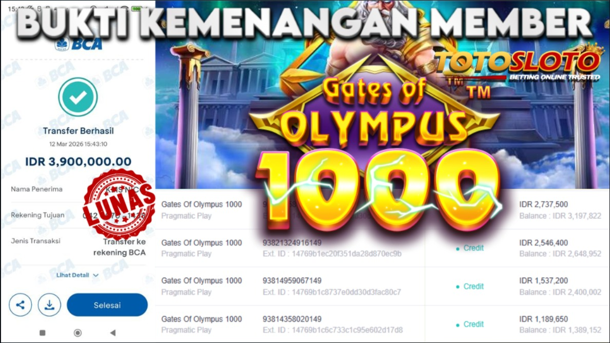 "Tanggal 12-03-2026 Selamat kepada member kami desi*** memenangkan nominal 3.9 juta!"