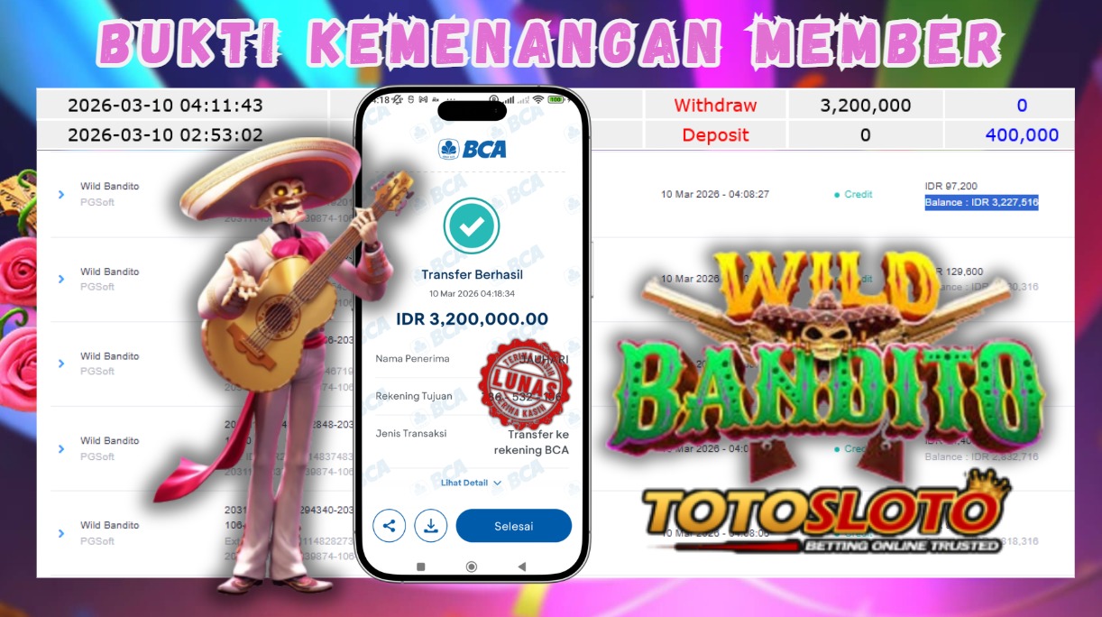 "Tanggal 10-03-2026 Selamat kepada member kami BEJO*** memenangkan nominal 3.2 juta!"