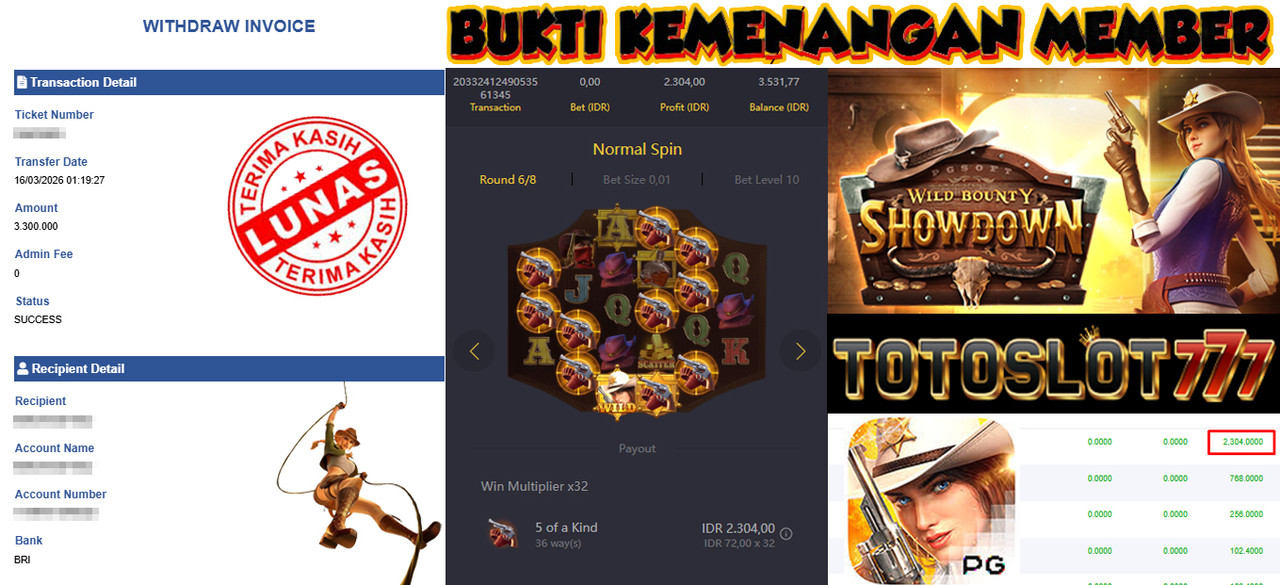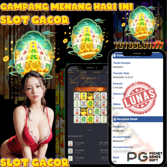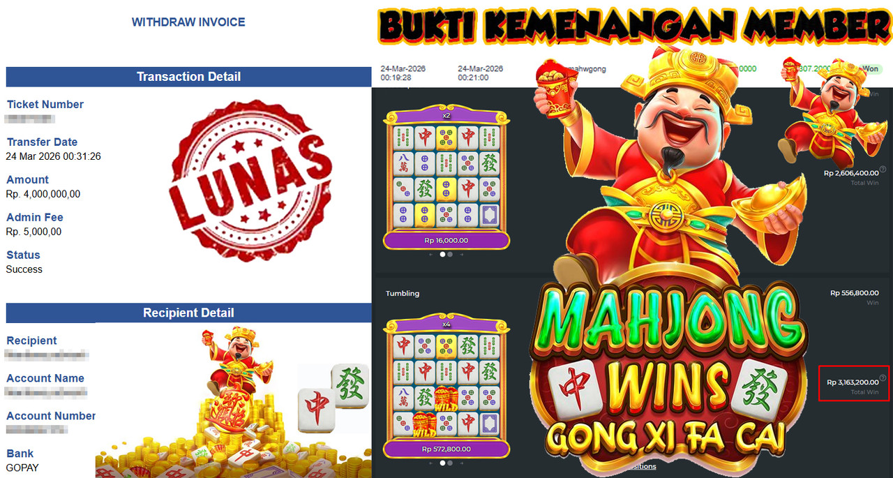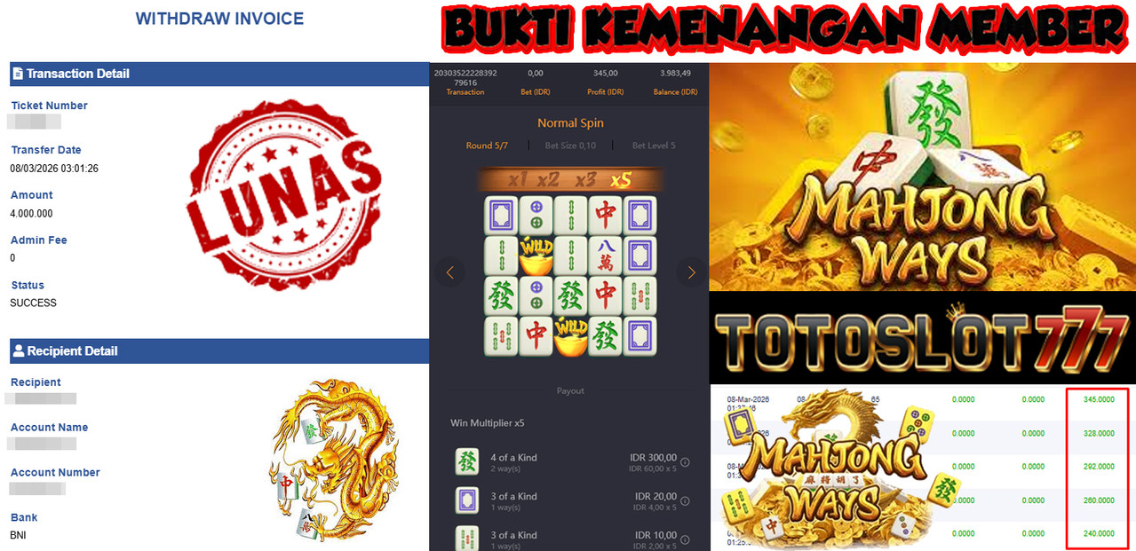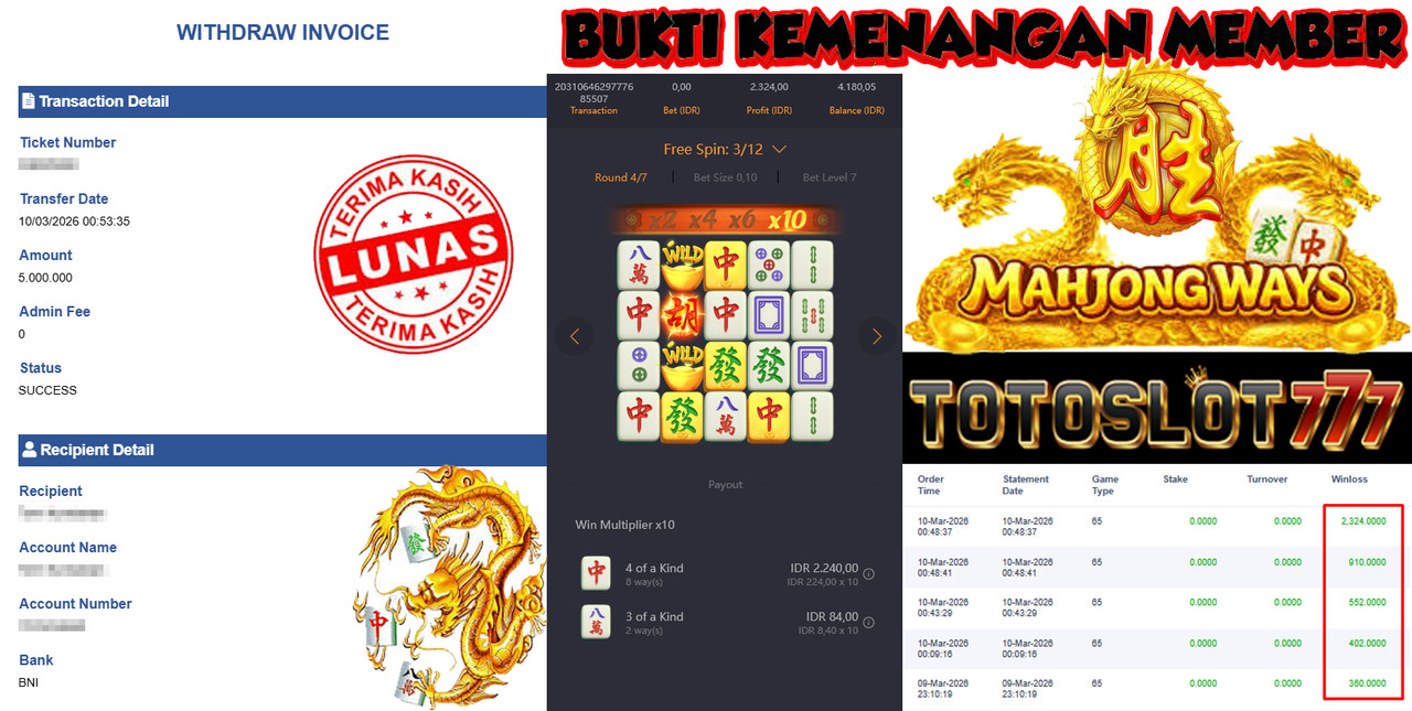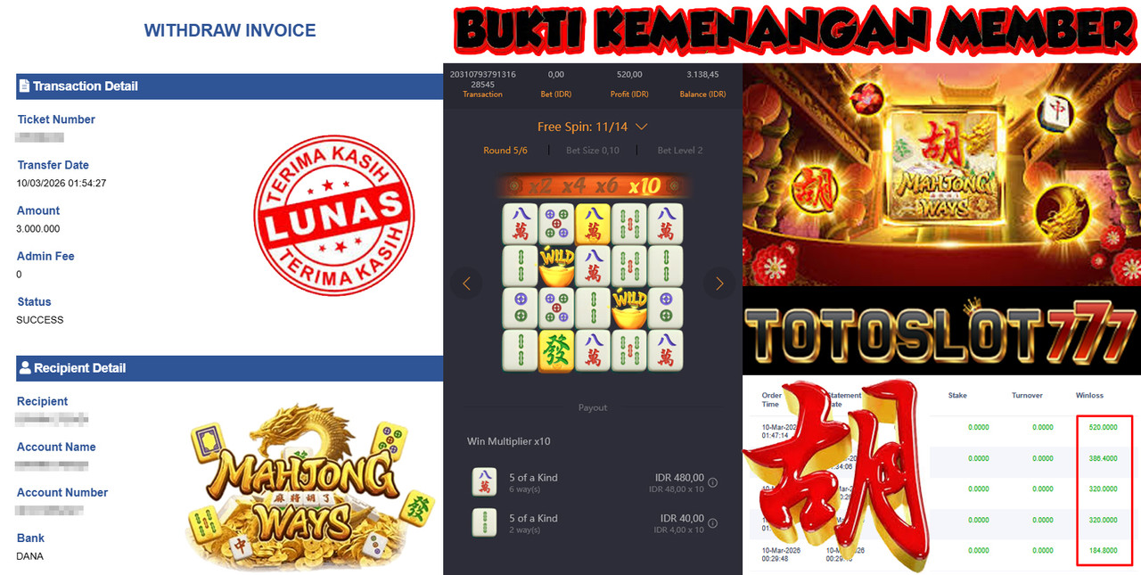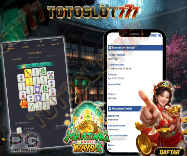 "Tanggal 01-03-2026 Selamat kepada member kami misb*** memenangkan nominal 3 juta!"