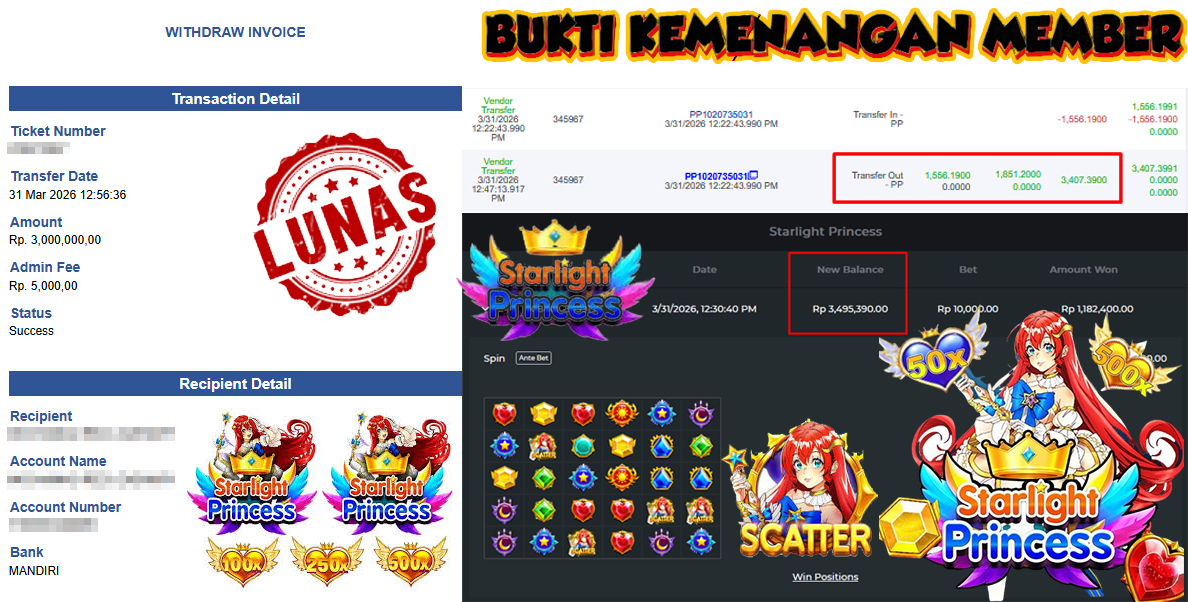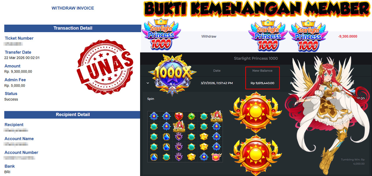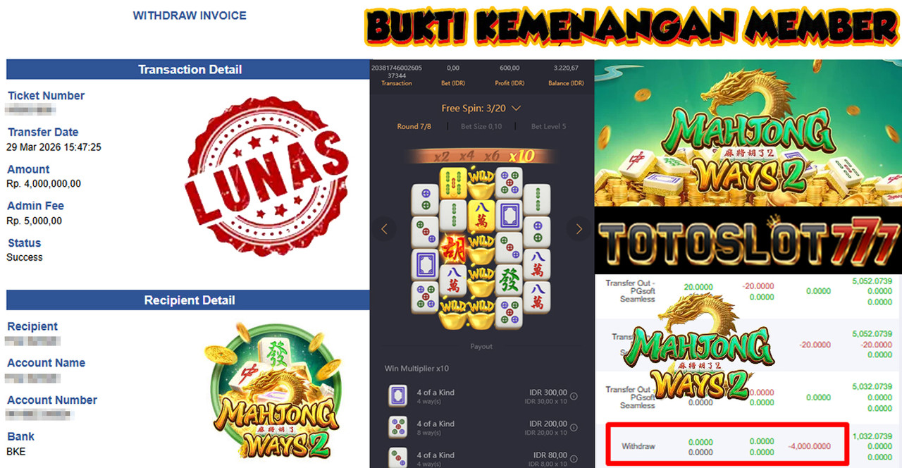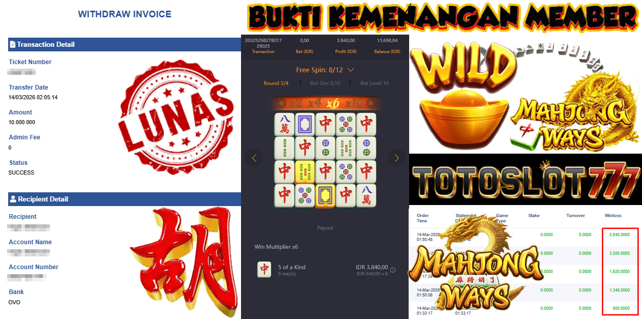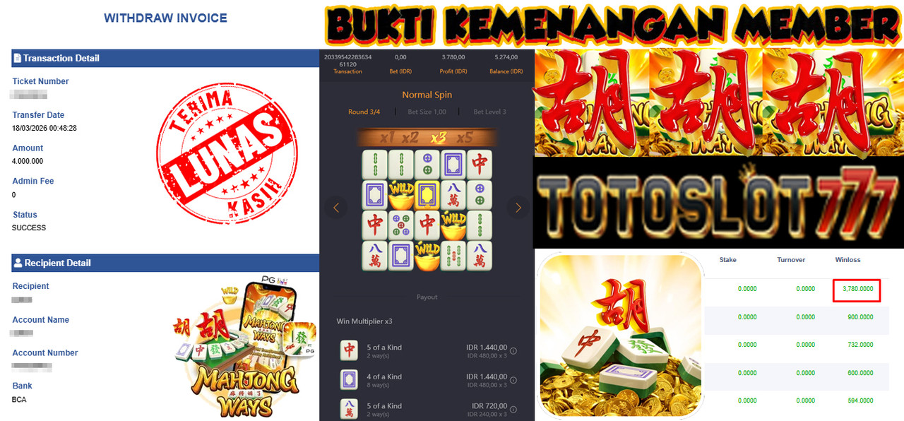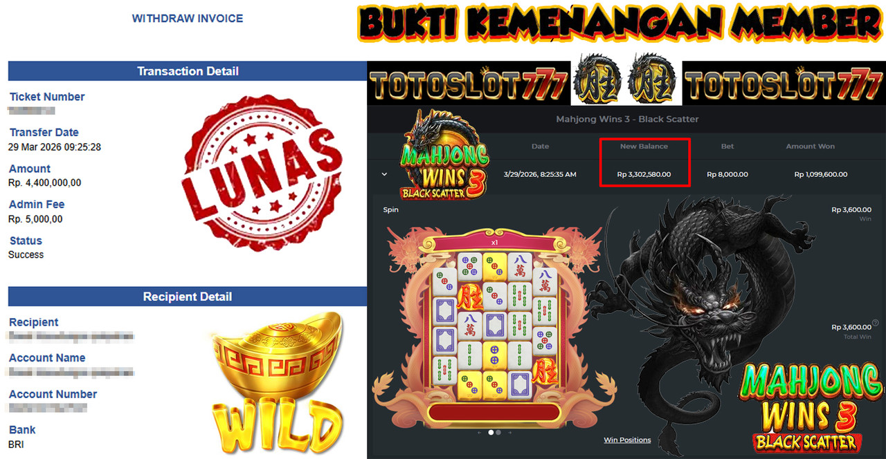 "Tanggal 01-03-2026 Selamat kepada member kami misb*** memenangkan nominal 3 juta!"