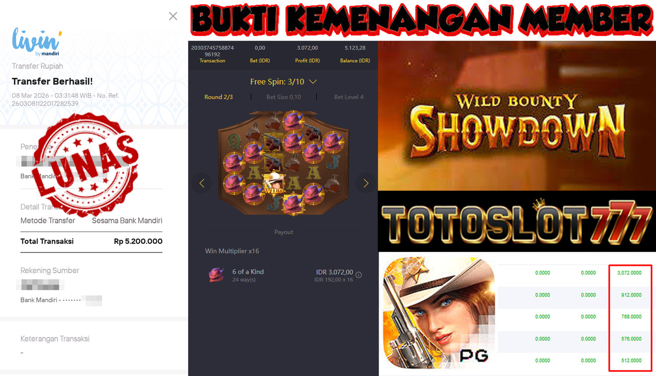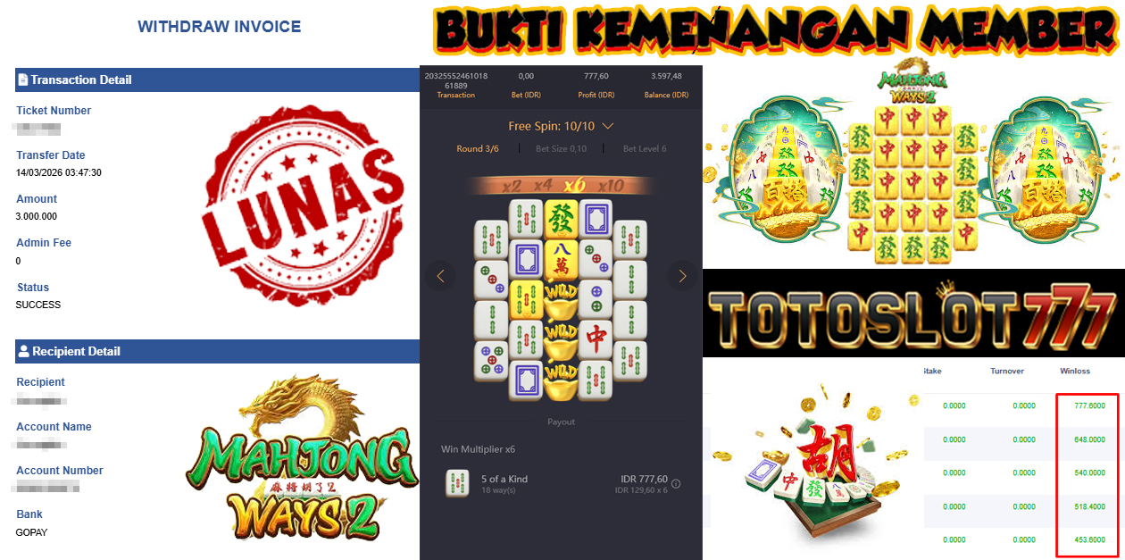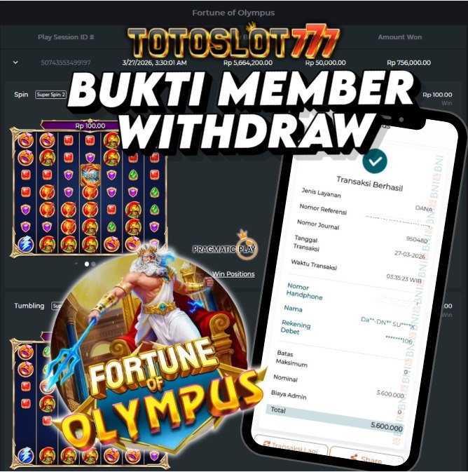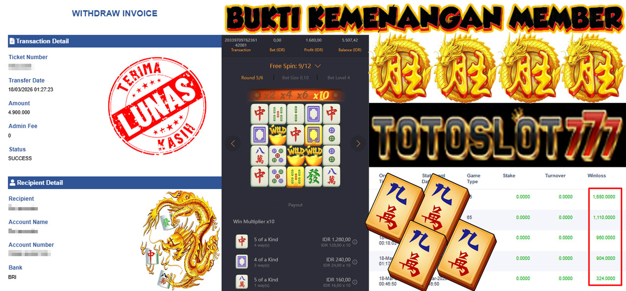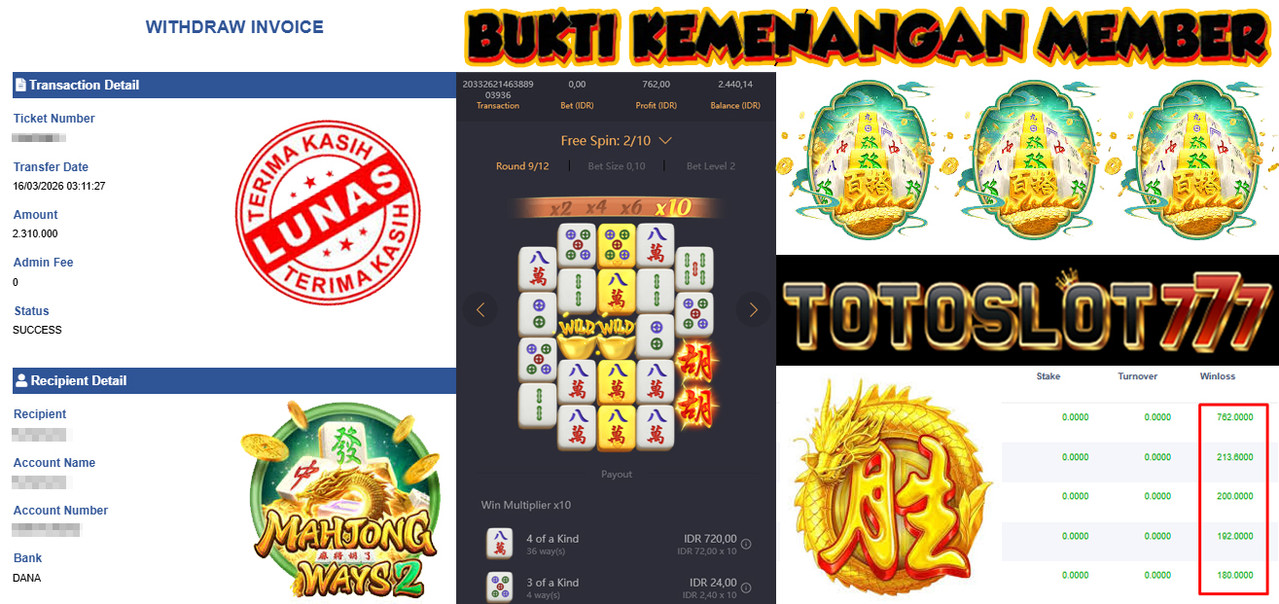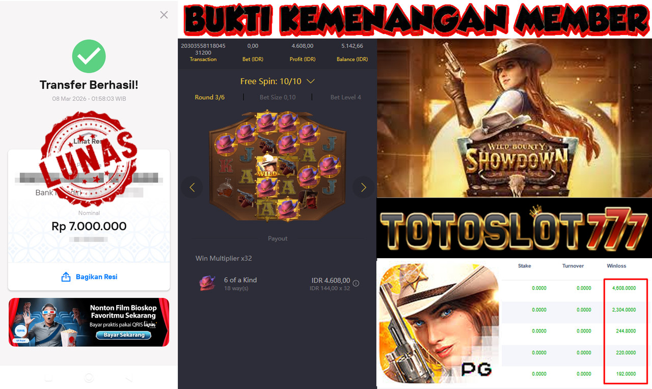 BUKTI KEMENANGAN MEMBER TOTOSLOT777