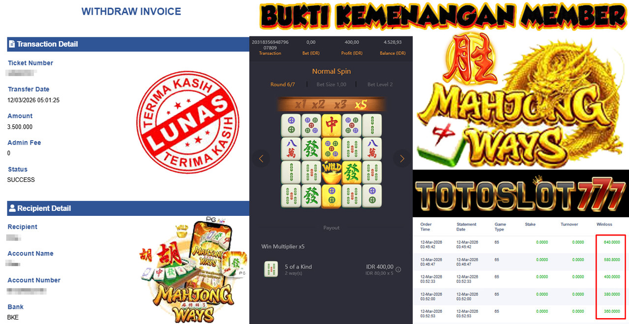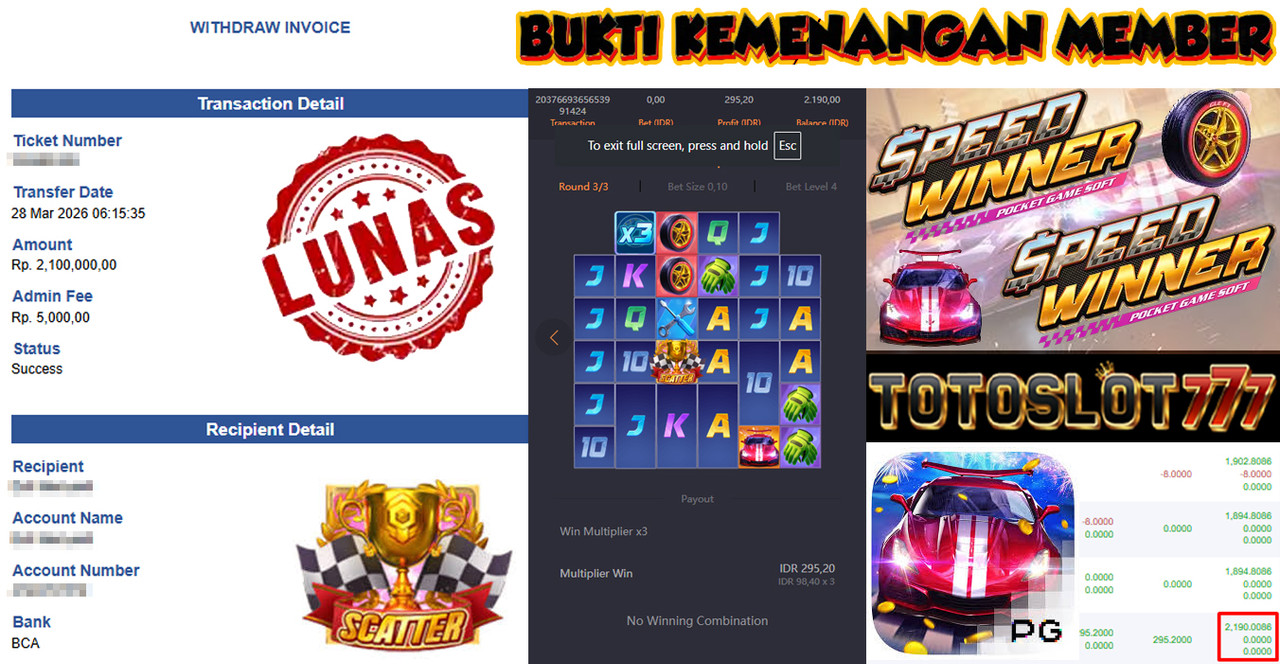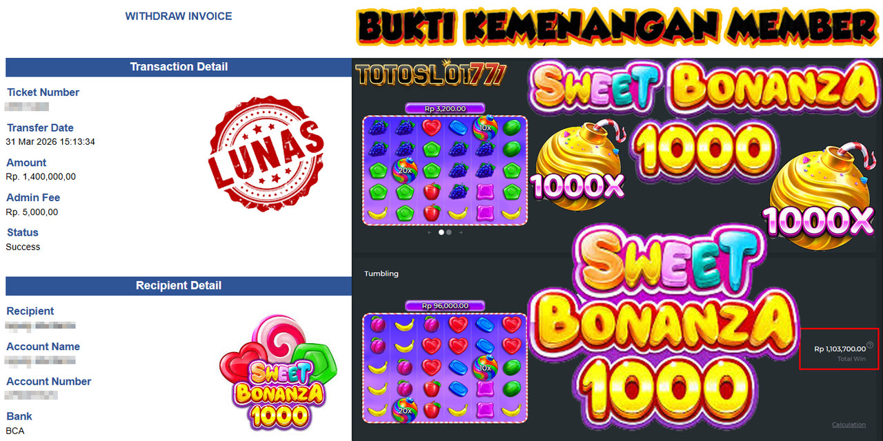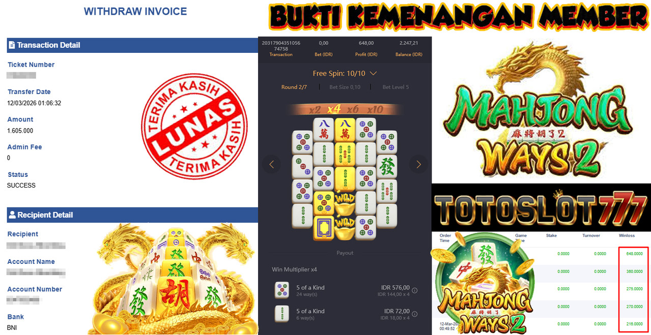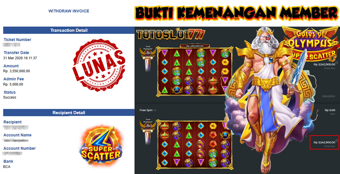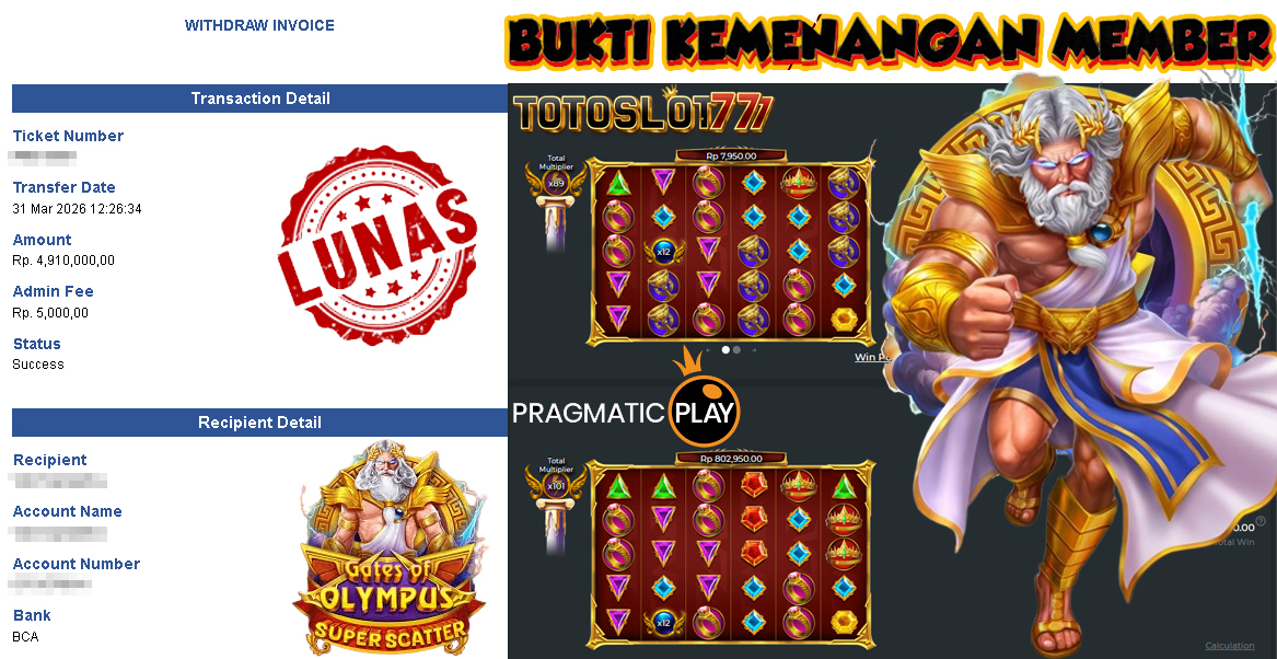 BUKTI KEMENANGAN MEMBER TOTOSLOT777