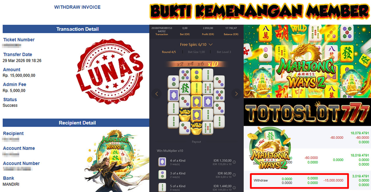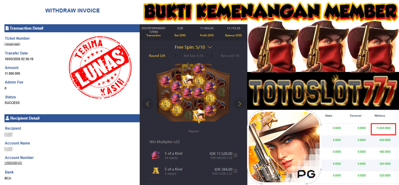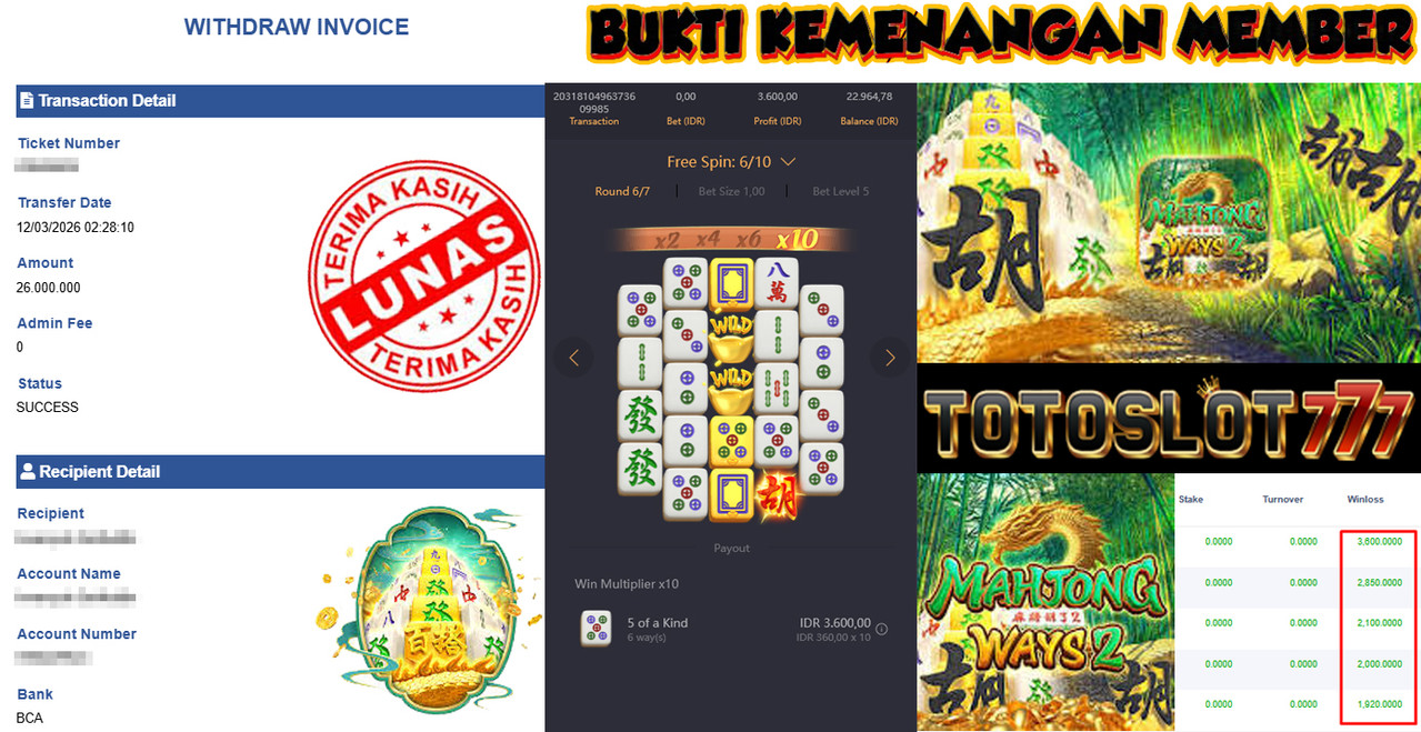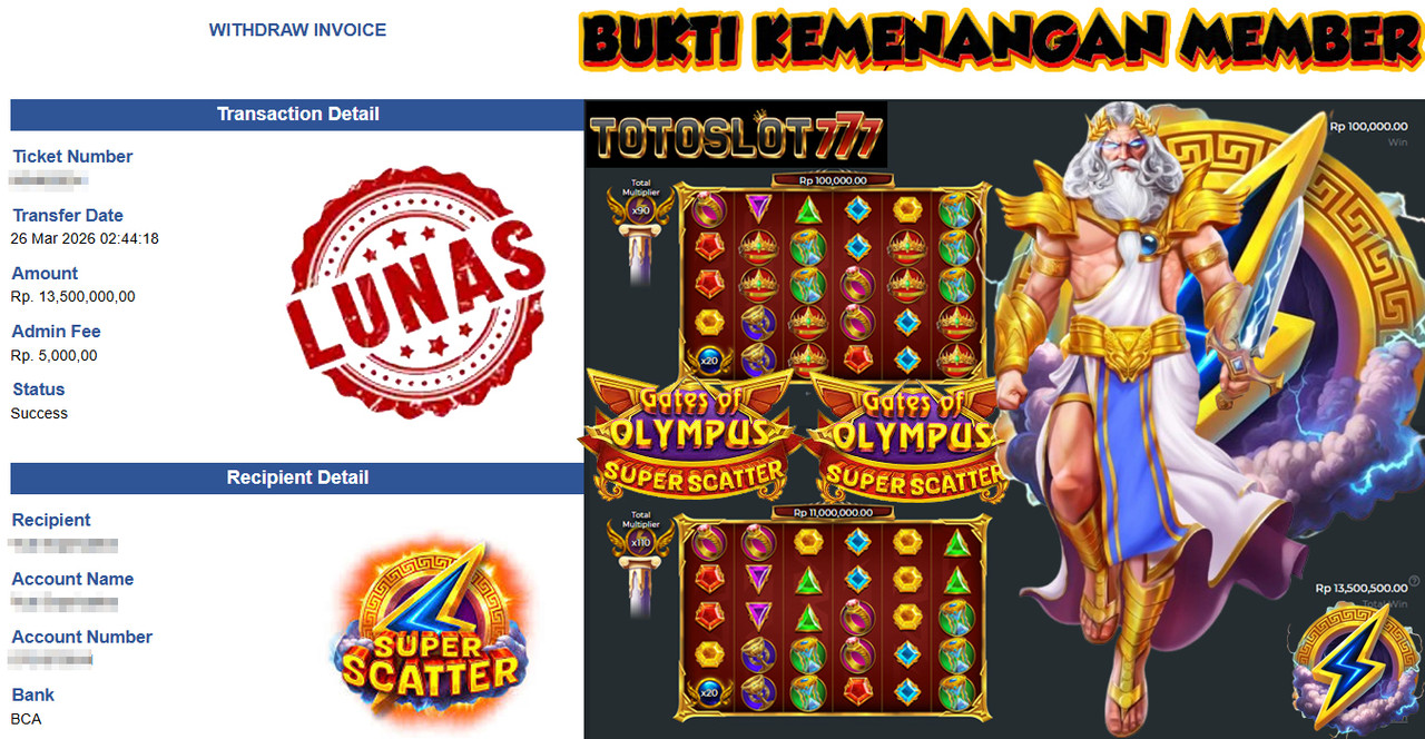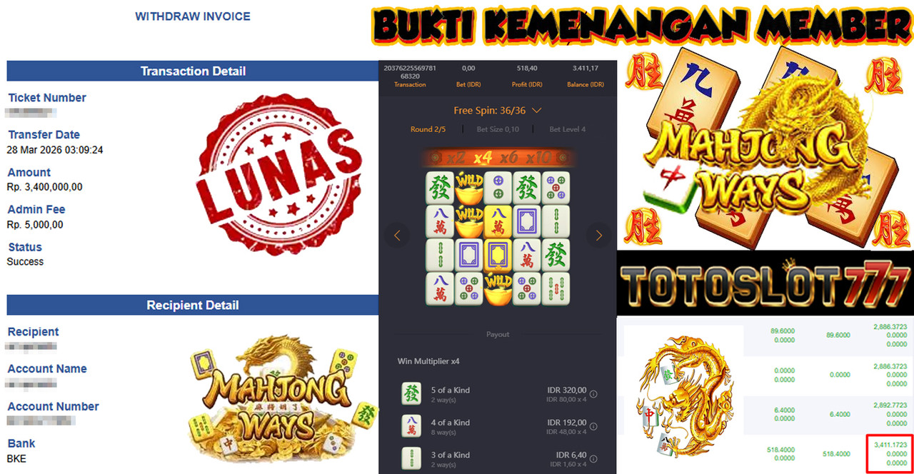 BUKTI KEMENANGAN MEMBER TOTOSLOT777