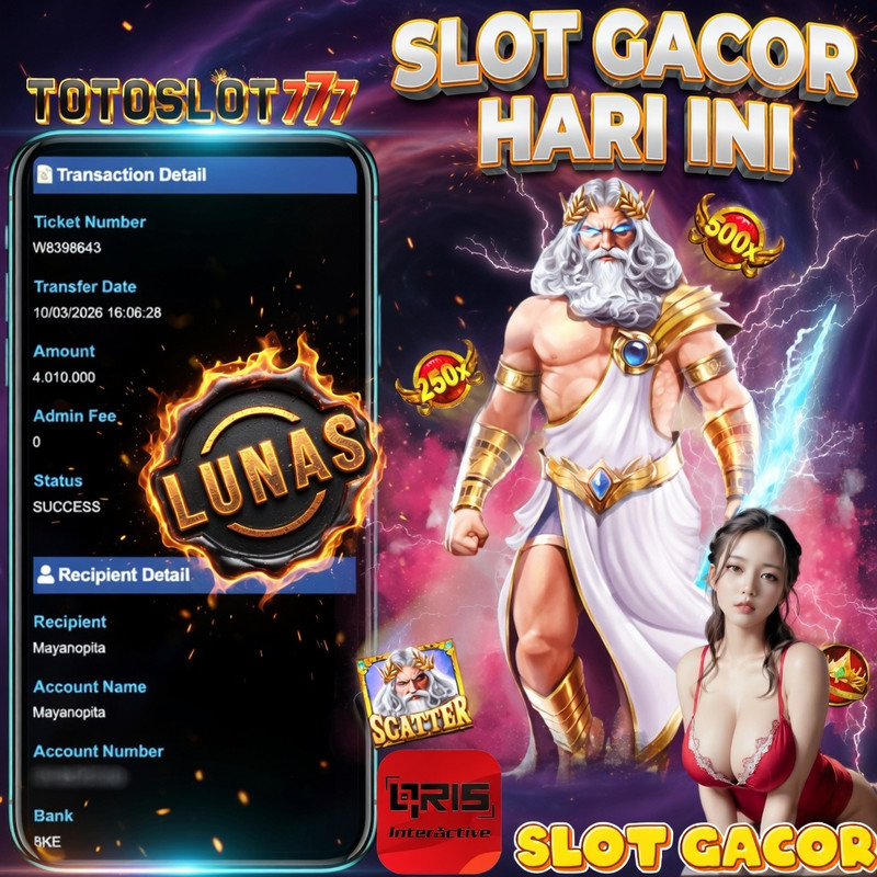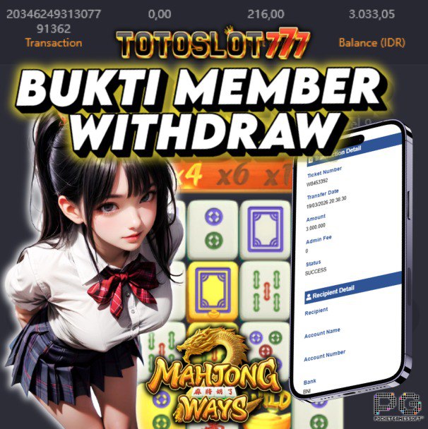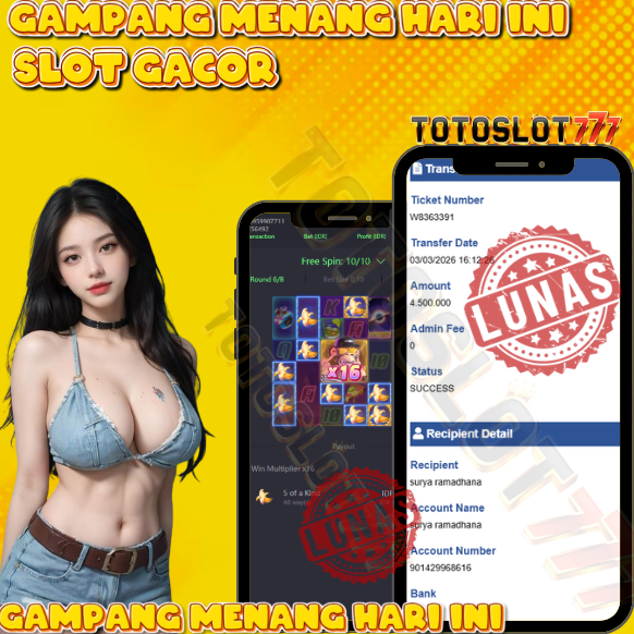 "Tanggal 04-03-2026 Selamat kepada member kami pid*** memenangkan nominal 4.9 juta!"